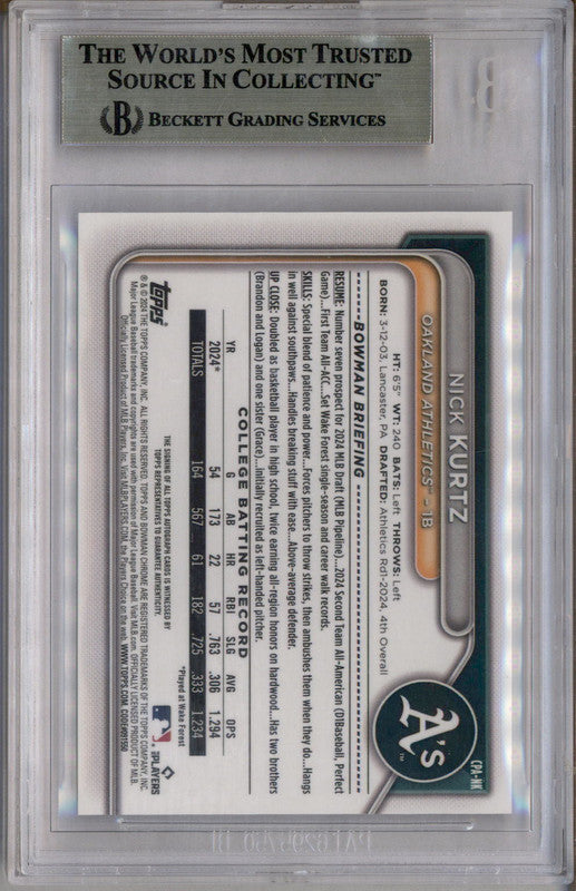 2024 Bowman Chrome Draft Autographs #CPANK Nick Kurtz BGS 9.5