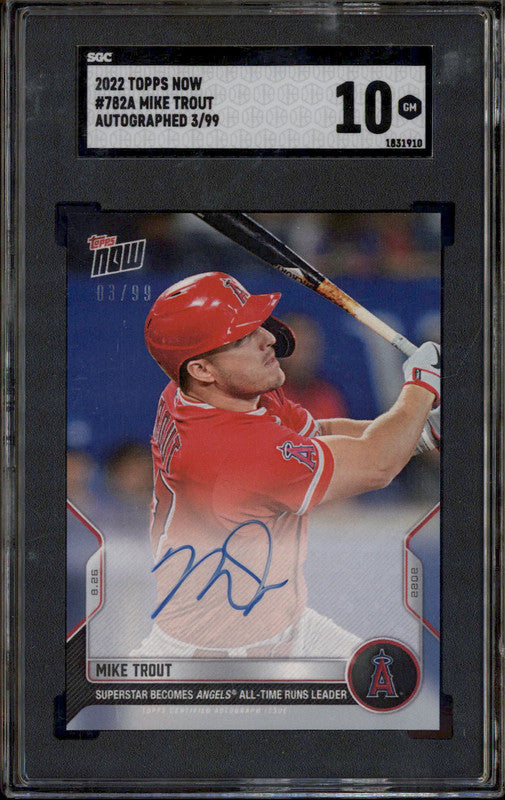 2022 Topps Now Auto #782A Mike Trout Autograph /99 SGC 10