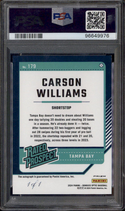 2024 Panini Donruss Optic Auto Gold Vinyl #179 Carson Williams RC 1/1 PSA 9