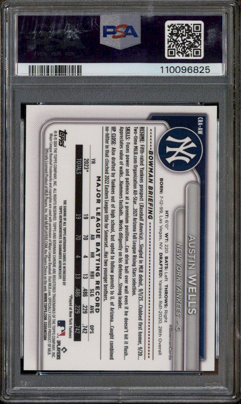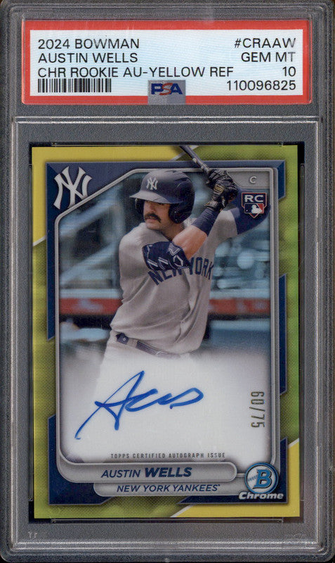 2024 Bowman Chrome Rookie Auto Yellow #CRAAW Austin Wells RC /75 PSA 10