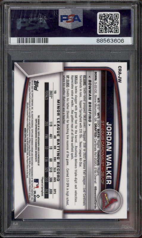 2023 Bowman Chrome Chrome Rookie Auto Gold #CRAJW Jordan Walker RC /50 PSA 10