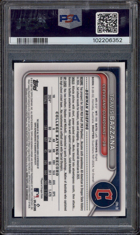 2024 Bowman Chrome Autographs #CPATB Travis Bazzana RC Auto PSA 10