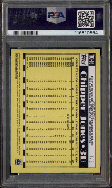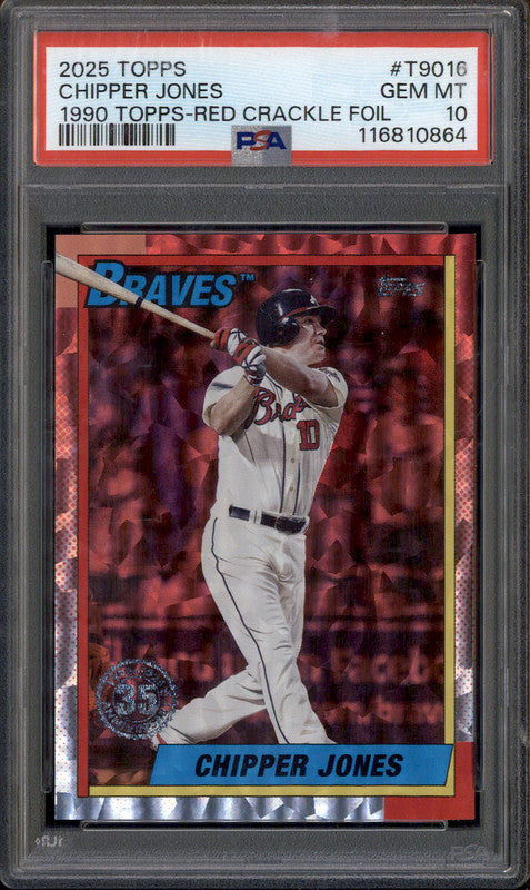 2025 Topps 1990 Topps Baseball Red Crackle Foil #T9016 Chipper Jones /5 PSA 10
