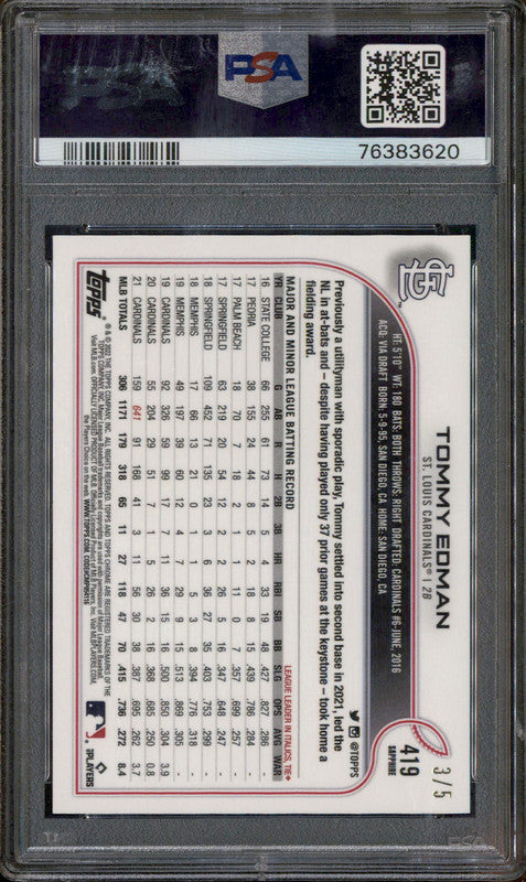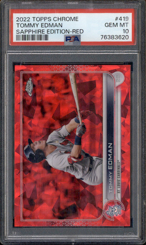 2022 Topps Chrome Sapphire Edition Red #419 Tommy Edman /5 PSA 10