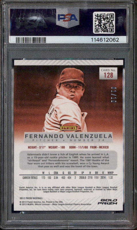 2012 Panini Prizm Gold Prizm #128 Fernando Valenzuela /10 PSA 10