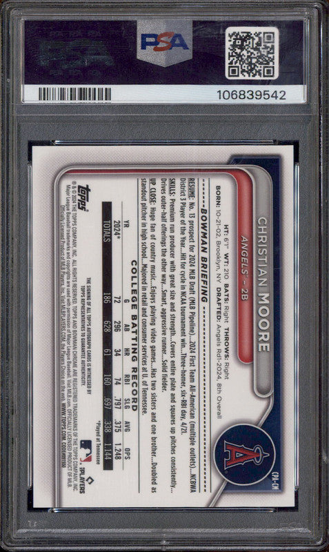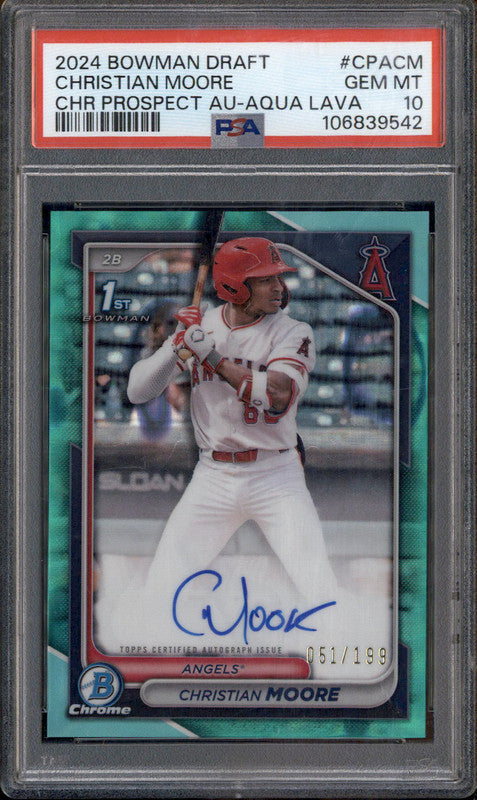 2024 Bowman Draft Chrome Auto Aqua Lava #CPACM Christian Moore RC /199 PSA 10