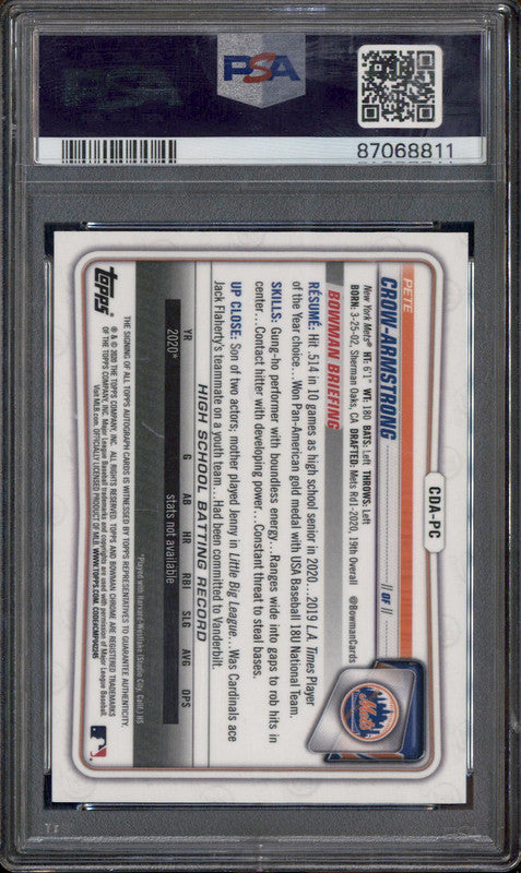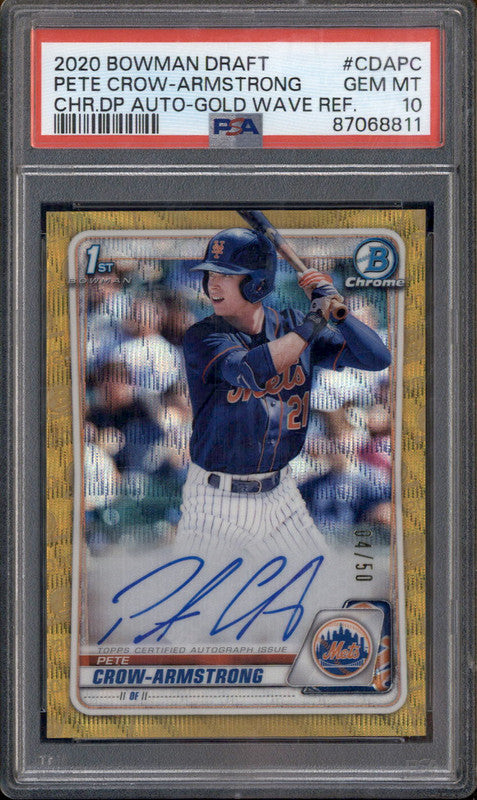 2020 Bowman Chrome Draft Auto Gold Wave Pete Crow-Armstrong RC /50 PSA 10