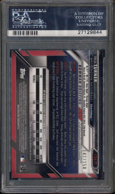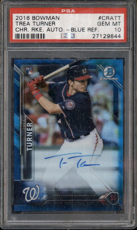 2016 Bowman Chrome Rookie Auto Blue Refractor #CRATT Trea Turner RC /150 PSA 10