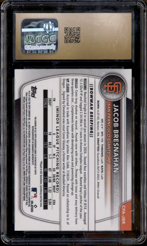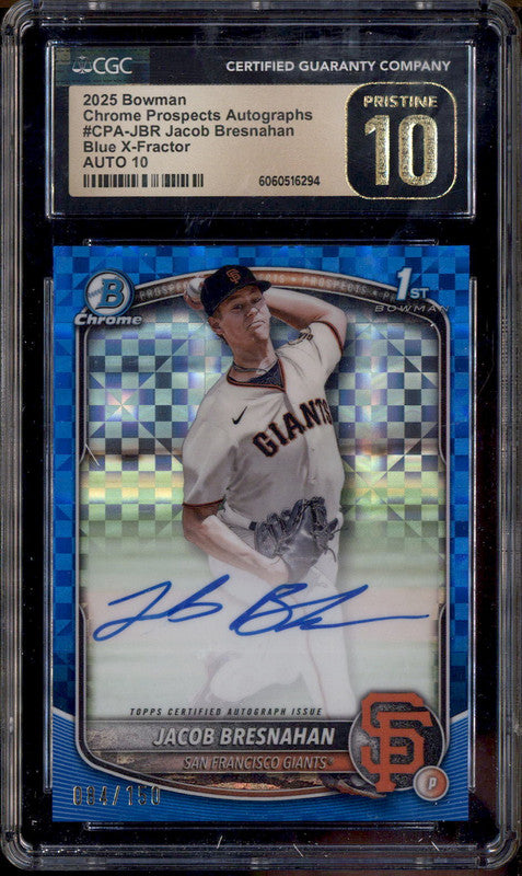 2025 Bowman Chrome Blue X-Fractor #CPA-JBR Jacob Bresnahan RC Auto /150 CGC 10