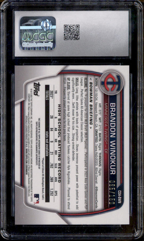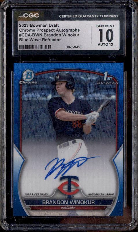 2023 Bowman Draft Blue Wave Refractor Brandon Winokur RC Auto /150 CGC 10
