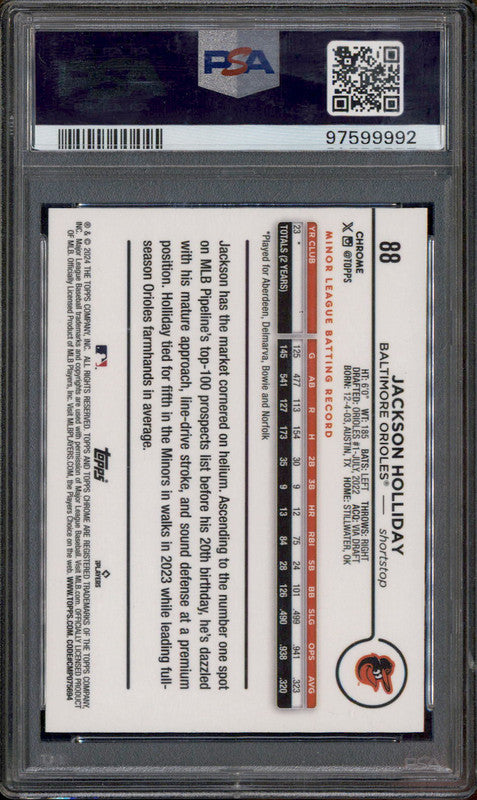 2024 Topps Chrome Prism Refractor #88 Jackson Holliday RC PSA 10