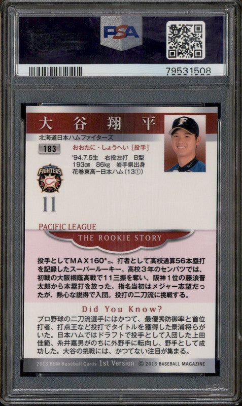 2013 BBM 2013 BBM #183 Shohei Ohtani RC PSA 7