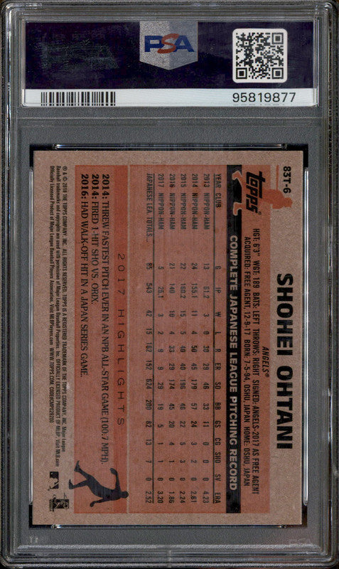 2018 Topps Chrome 1983 Topps Refractors #83T-6 Shohei Ohtani RC PSA 9