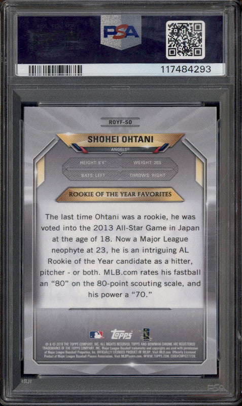 2018 Bowman Chrome Mega Box ROY Favorites #SO Shohei Ohtani RC PSA 10