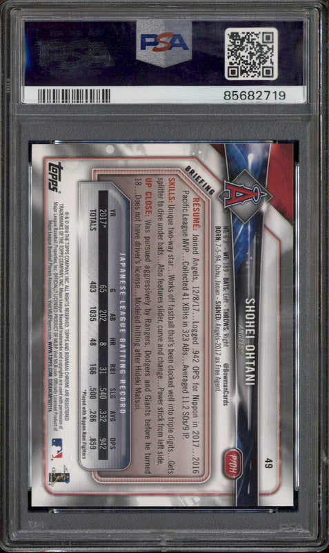 2018 Bowman #49 Shohei Ohtani RC PSA 10
