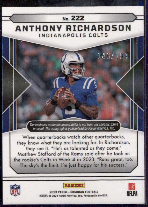 2023 Panini Obsidian #222 Anthony Richardson Autograph RC Auto /199