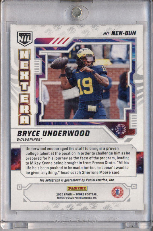 2025 Panini Score Next Era NIL Auto #NEN-BUN Bryce Underwood Auto