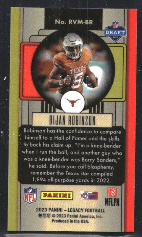 2023 Legacy Rookie Premium Edition Mini Variation Sapphire Bijan Robinson RC /20
