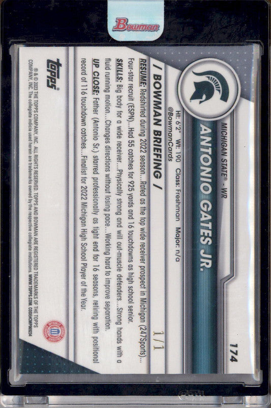 2023 Bowman University Chrome Sapphire Padpradascha Antonio Gates Jr. 1/1