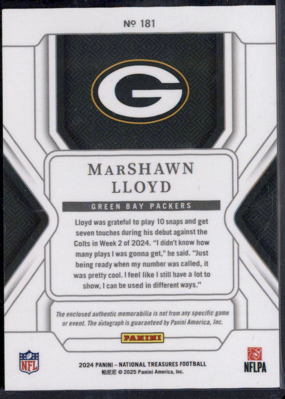 2024 National Treasures Rookie Patch Auto MarShawn Lloyd RC /99