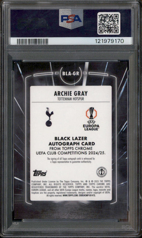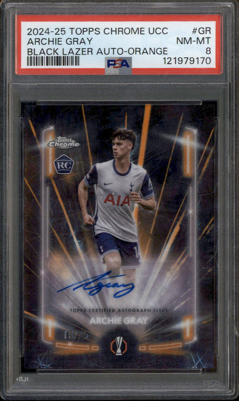 2024-25 Topps Chrome Black Lazer Auto Orange Lazer #BLA-GR Archie Gray /25 PSA 8