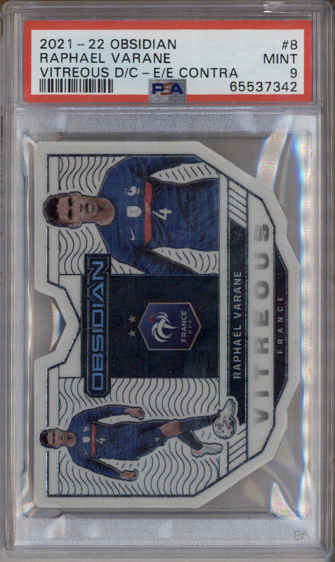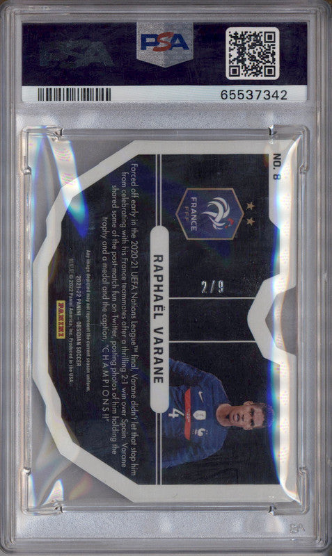 2021 Panini Obsidian Vitreous Electric Etch Contra #8 Raphael Varane /9 PSA 9