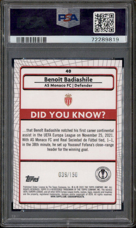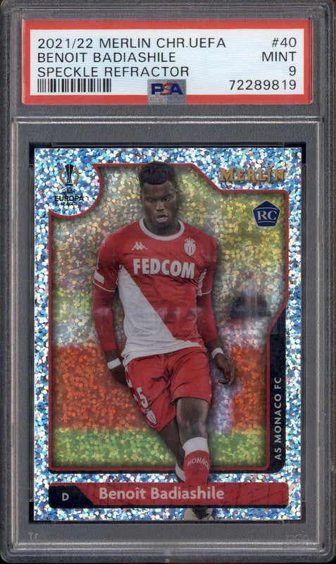 2021-22 Topps Merlin Chrome UEFA Speckle Refractor Benoit Badiashile /150 PSA 9