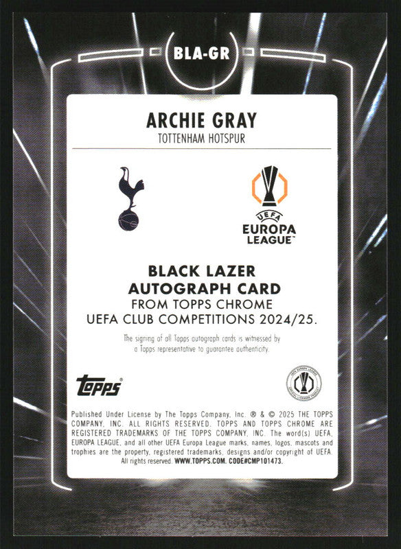 2024-25 Topps Chrome UEFA Black Lazer Autographs #BLA-GR Archie Gray Auto