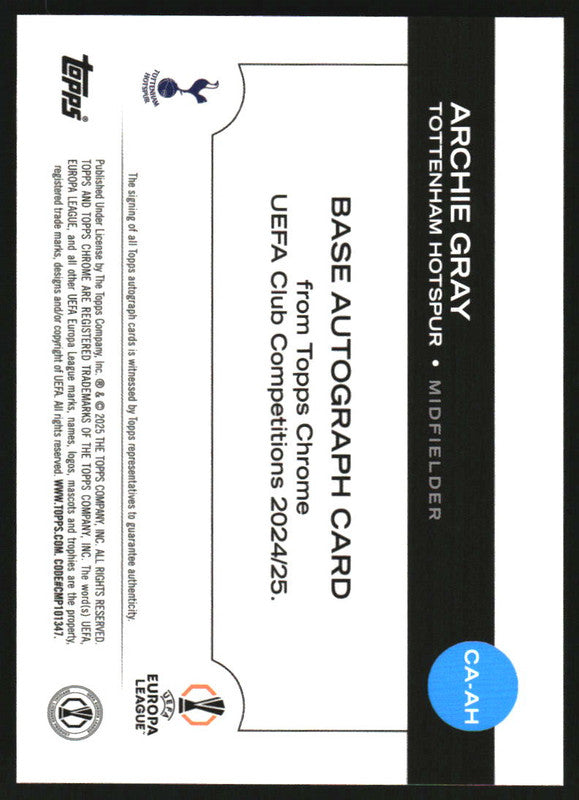 2024-25 Topps Chrome UEFA Blue Refractor #CA-AH Archie Gray Auto /150