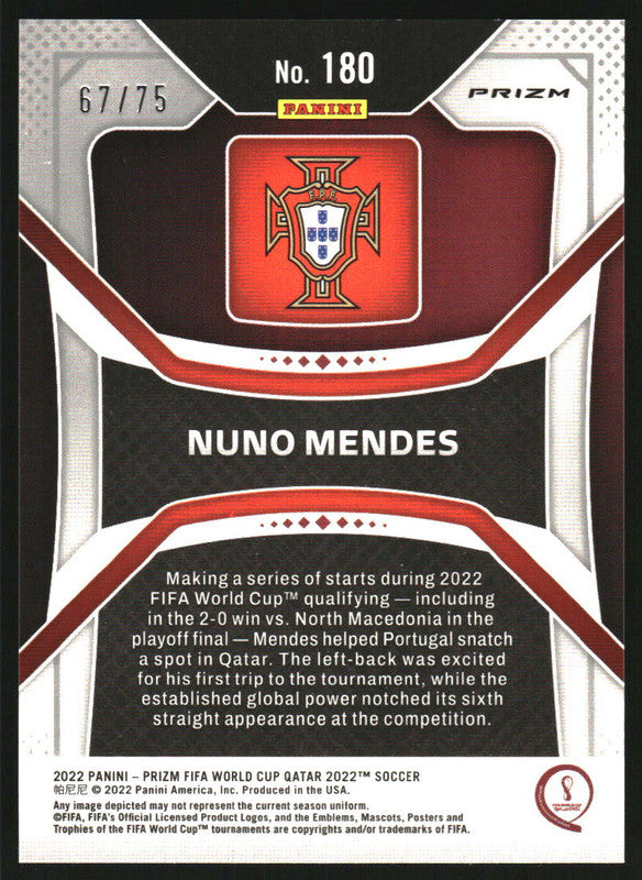 2022 Panini Prizm World Cup Blue Mojo #180 Nuno Mendes /75