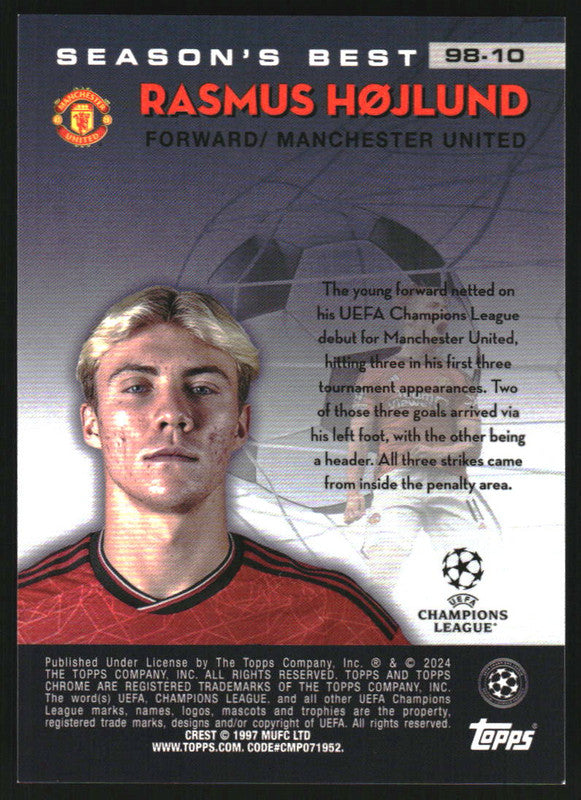 2023 Topps Chrome UEFA 1998 Shooting Stars Black Refractor Rasmus Hojlund /10