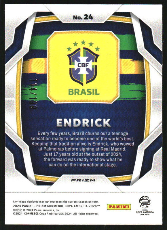 2024 Panini Prizm Copa America Red Prizm #24 Endrick RC /199
