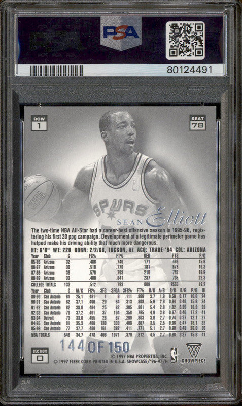 1996-97 Fleer Flair Showcase Legacy Collection Row 1 #78 Sean Elliott /150 PSA 8