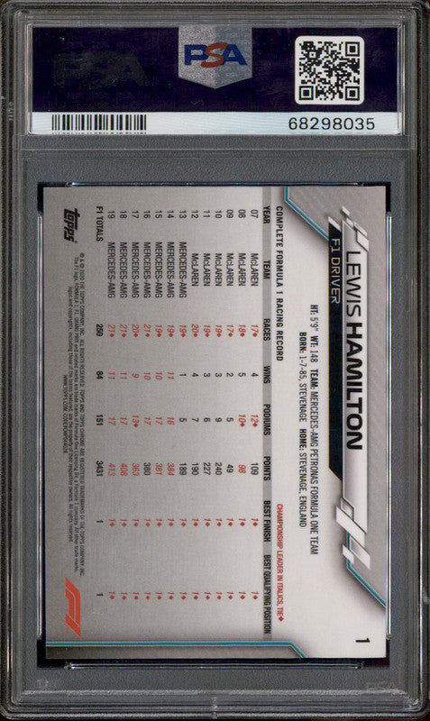 2020 Topps Chrome Formula 1 #1a Lewis Hamilton PSA 9