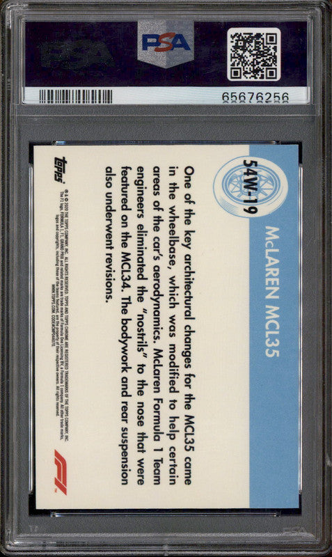 2020 Topps Chrome Formula 1 1954 World on Wheels #54W-19 McLaren MCL35 PSA 9