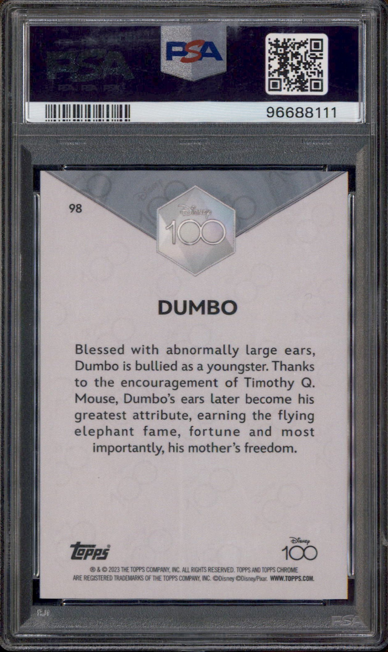 2023 Topps Chrome Disney 100 Dark and Light Blue Refractors #98 Dumbo /75 PSA 9