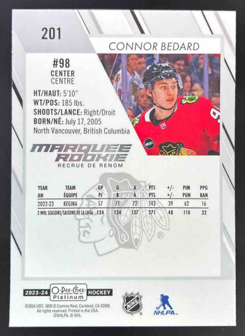 2023-24 O-Pee-Chee Platinum #201 Connor Bedard RC