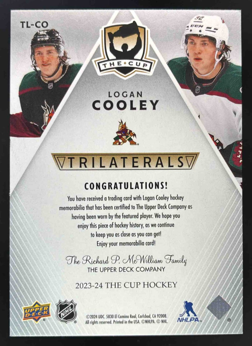2023-24 Upper Deck The Cup Trilaterals Jersey #TL-CO Logan Cooley /33