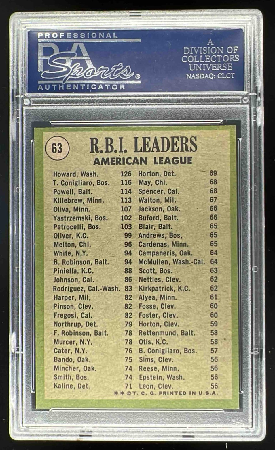 1971 Topps #63 1970 Leaders Frank Howard Tony Conigliaro Boog Powell PSA 7