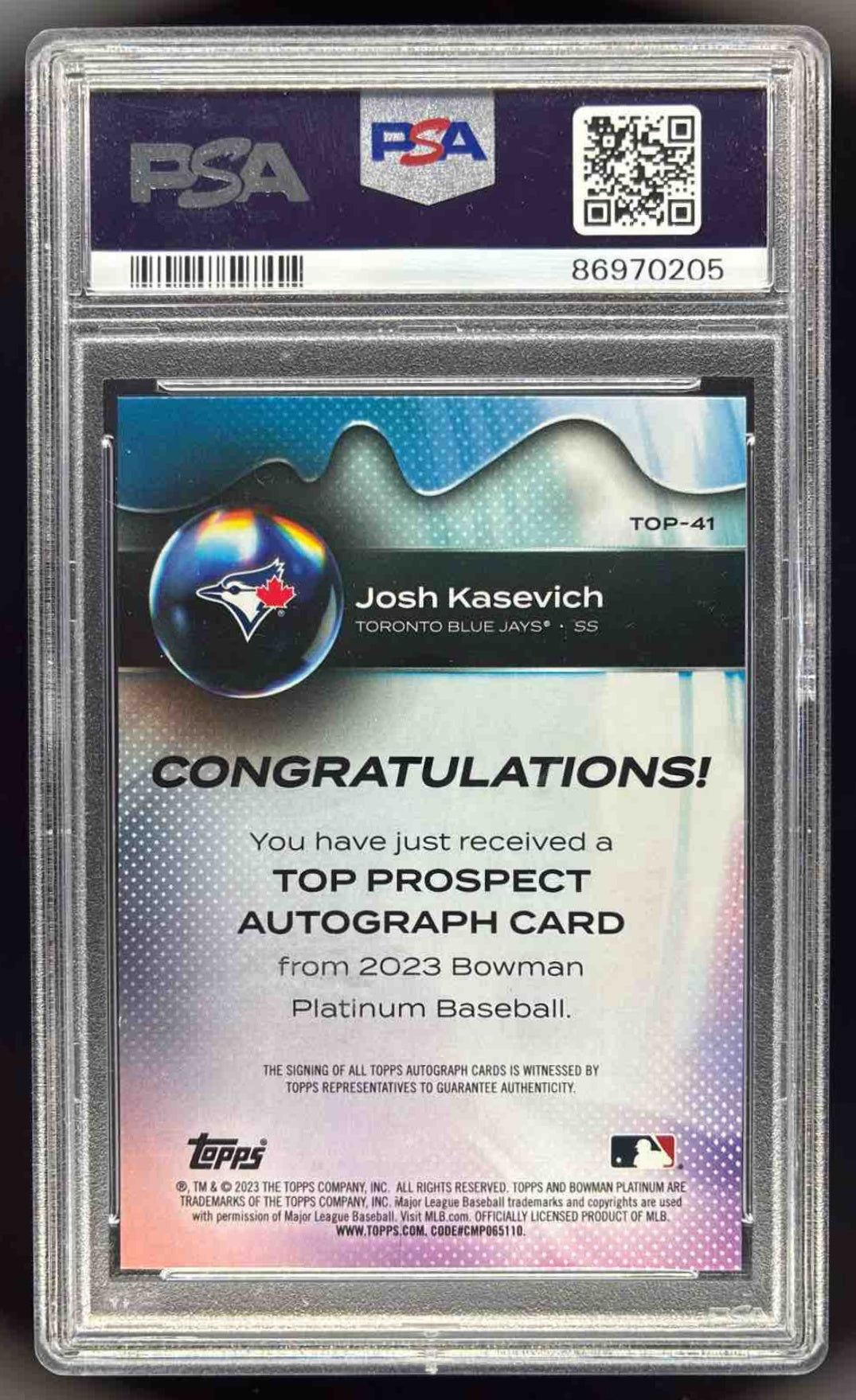 2023 Bowman Platinum Top Prospects Red #TOP-41 Josh Kasevich Auto /10 PSA 10