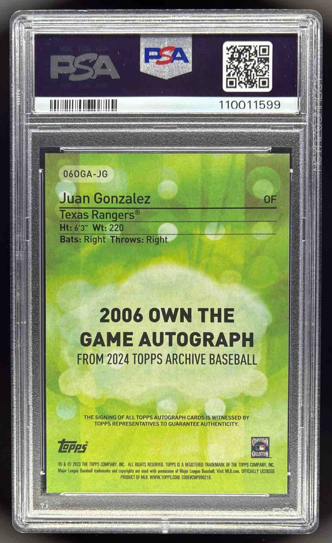 2024 Topps Archives 2006 Own the Game #06OGA-JG Juan Gonzalez Auto PSA 10