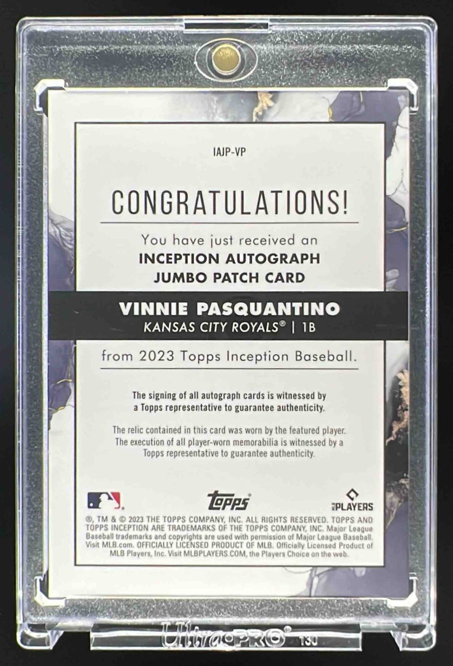 2023 Topps Inception Jumbo Patch Orange #IAJP-VP Vinnie Pasquantino RC Auto /25