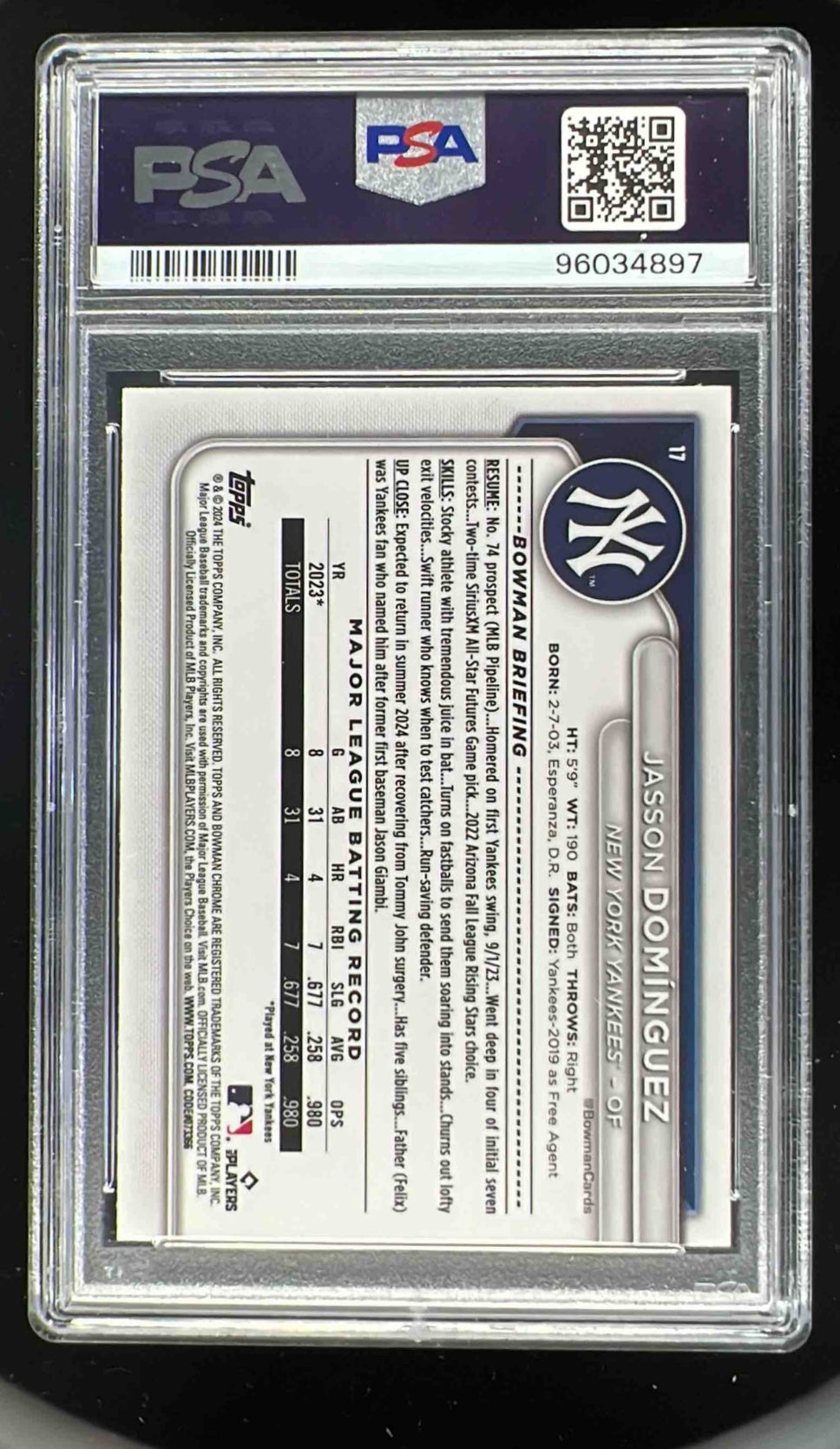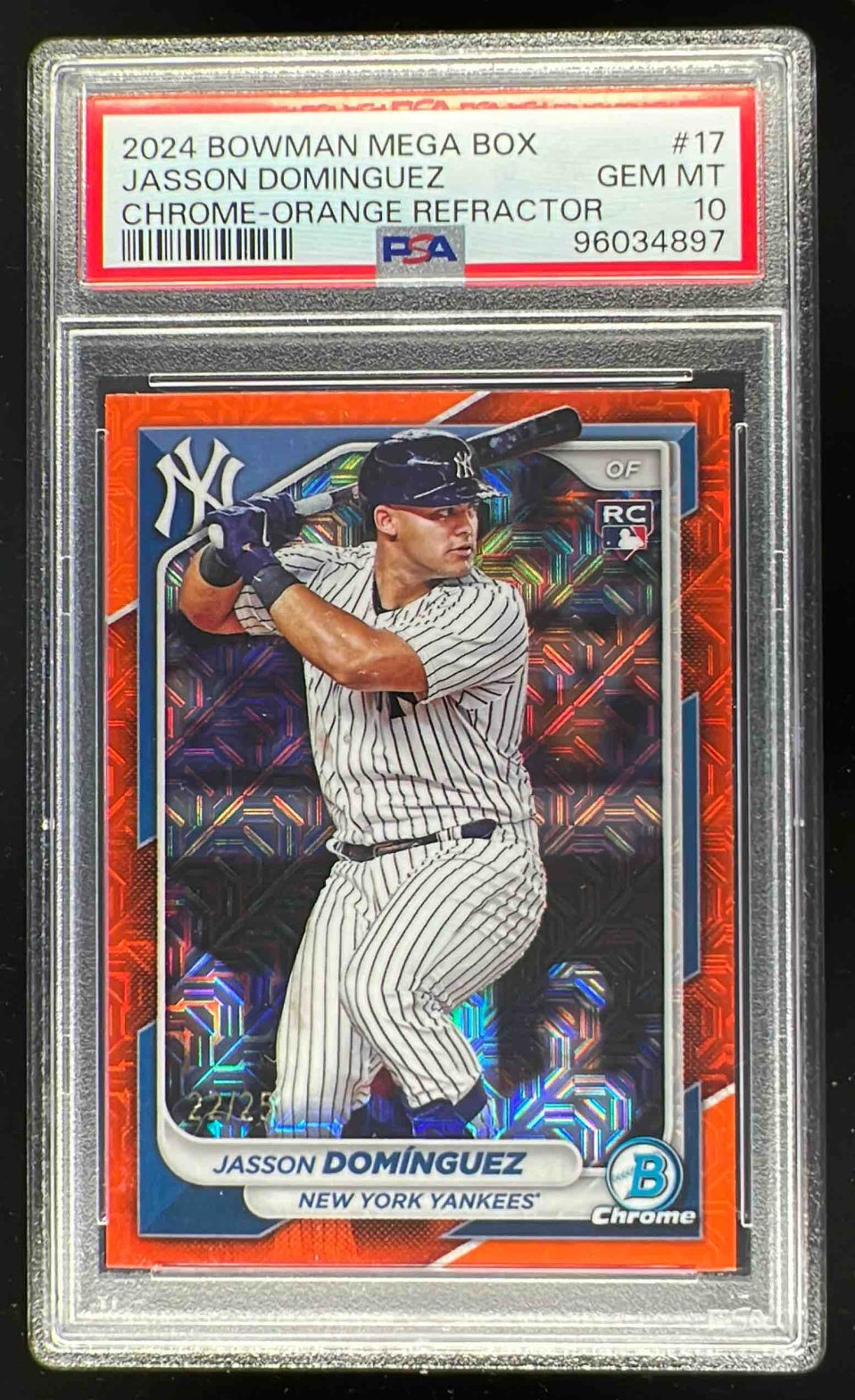 2024 Bowman Mega Box Mojo Orange Refractor #17 Jasson Dominguez /25 PSA 10