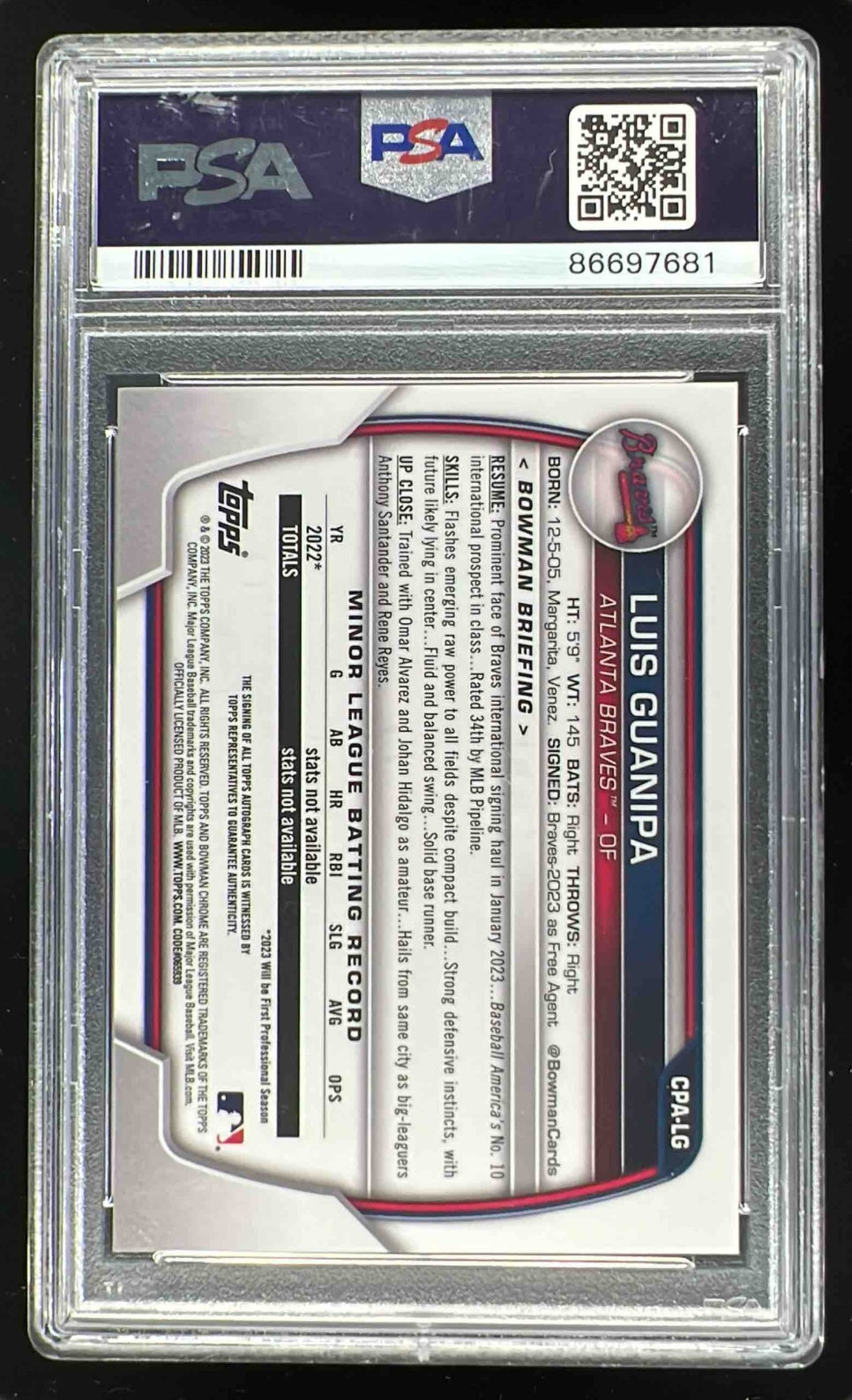 2023 Bowman Chrome Purple Refractor #CPA-LG Luis Guanipa RC Auto /250 PSA 10