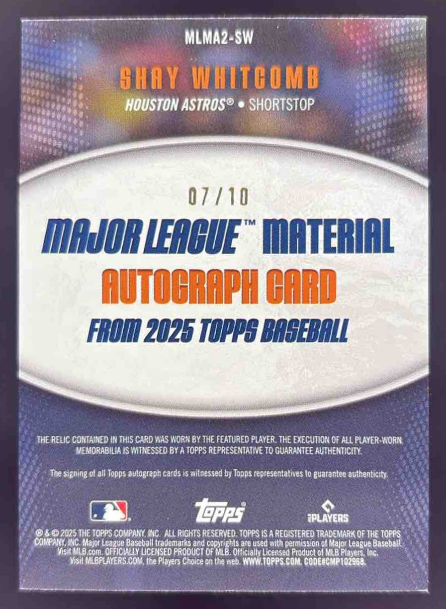 2025 Topps Major League Material Autographs Black #MLMA2-SW Shay Whitcomb RC /10
