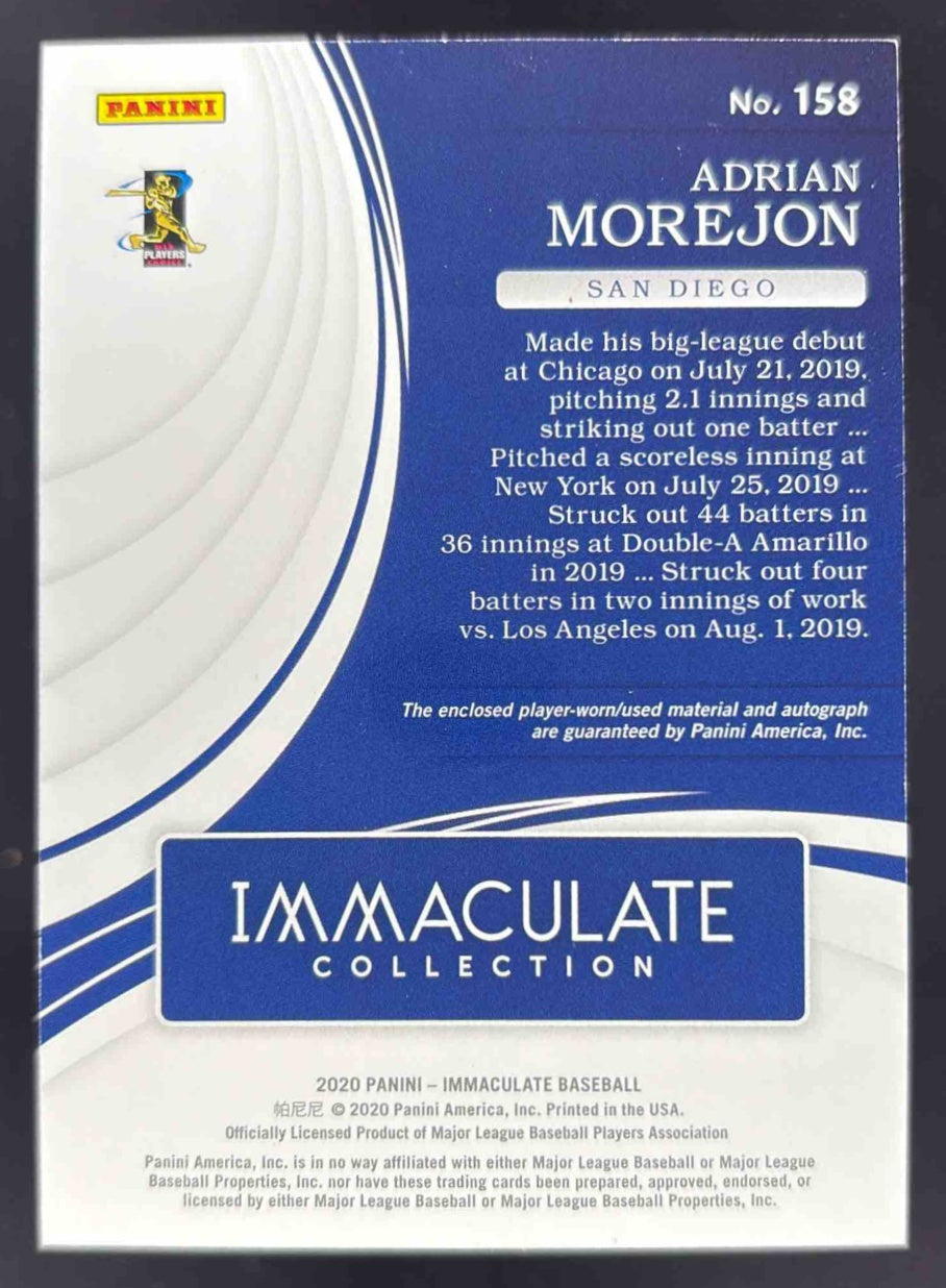 2020 Immaculate Collection Rookie Patch Tag #158 Adrian Morejon RC Auto 1/1