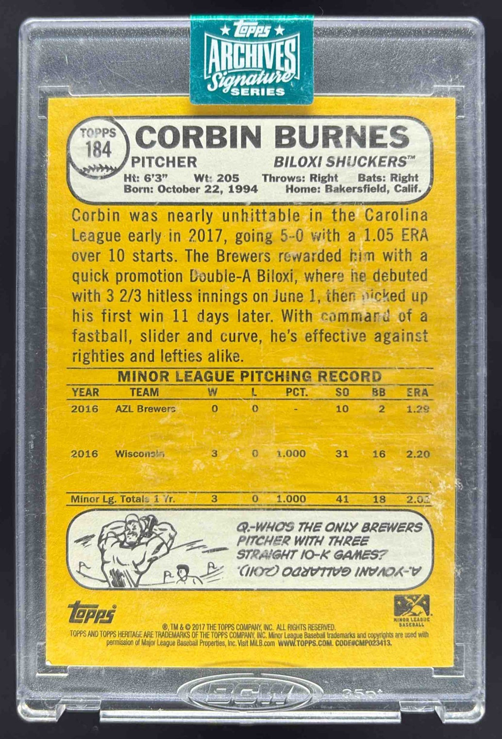 2024 Topps Archives Signature Series Autograph Corbin Burnes Auto /16