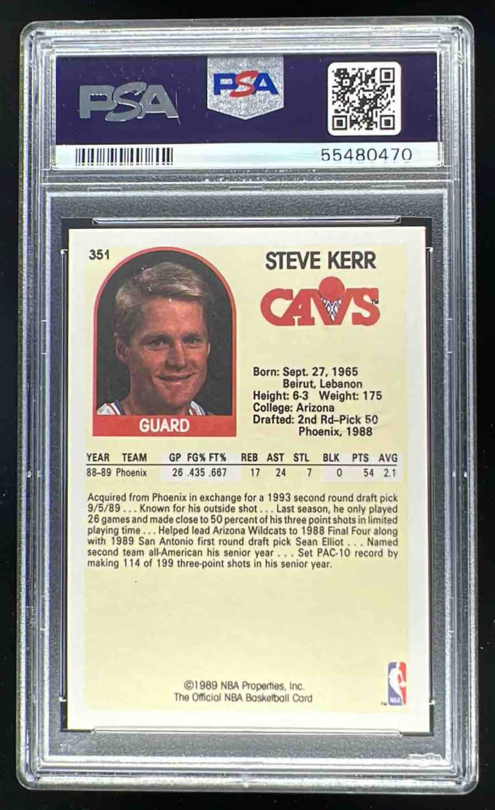 1989-90 Hoops #351 Steve Kerr RC PSA 9