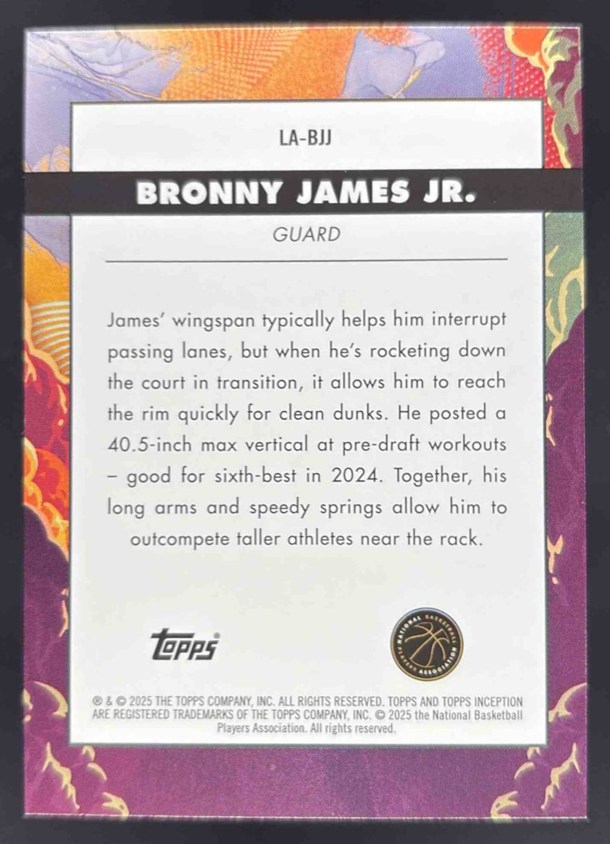 2024-25 Topps Inception Launch #LA-BJJ Bronny James Jr. RC