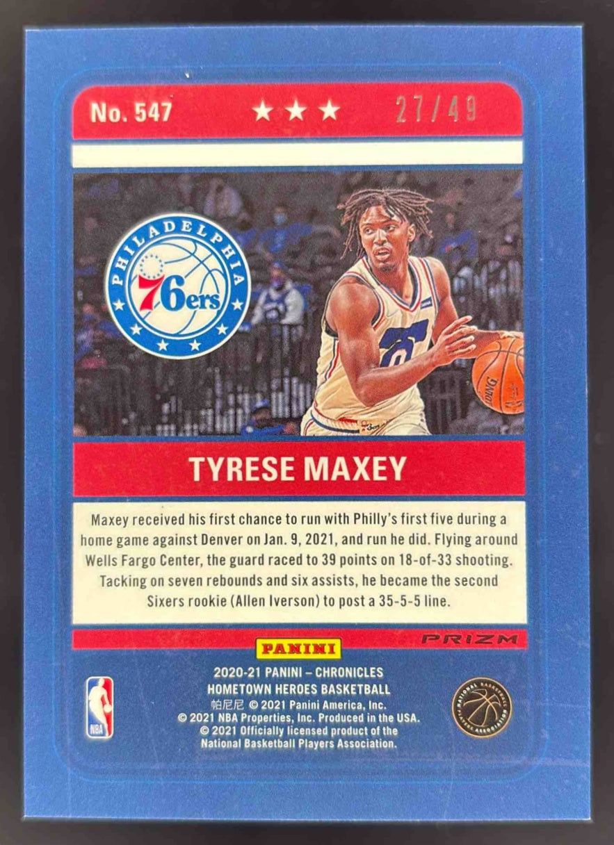 2020-21 Panini Chronicles Purple #547 Tyrese Maxey RC /49